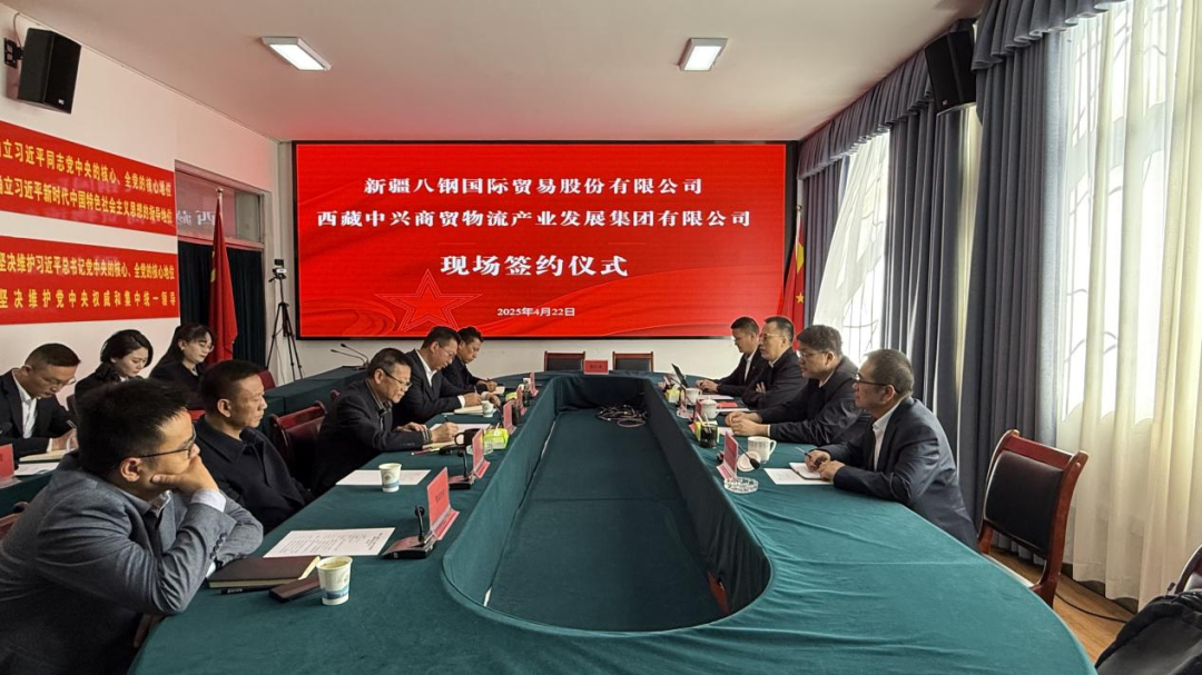 ???????????????????????????????????????????????????????????????????????????2025年4月22日,西藏中興商貿(mào)物流產(chǎn)業(yè)發(fā)展集團有限公司與新疆八鋼國際貿(mào)易股份有限公司隆重舉行《合作意向書》簽約儀式,新疆八鋼國際貿(mào)易股份有限公司董事長王豫東一行親臨現(xiàn)場,共啟合作新篇章。集團黨委書記、董事長李忠,黨委專職副書記、董事、工會主席索朗次仁,黨委委員、副總經(jīng)理張佰棟出席本次簽約儀式。