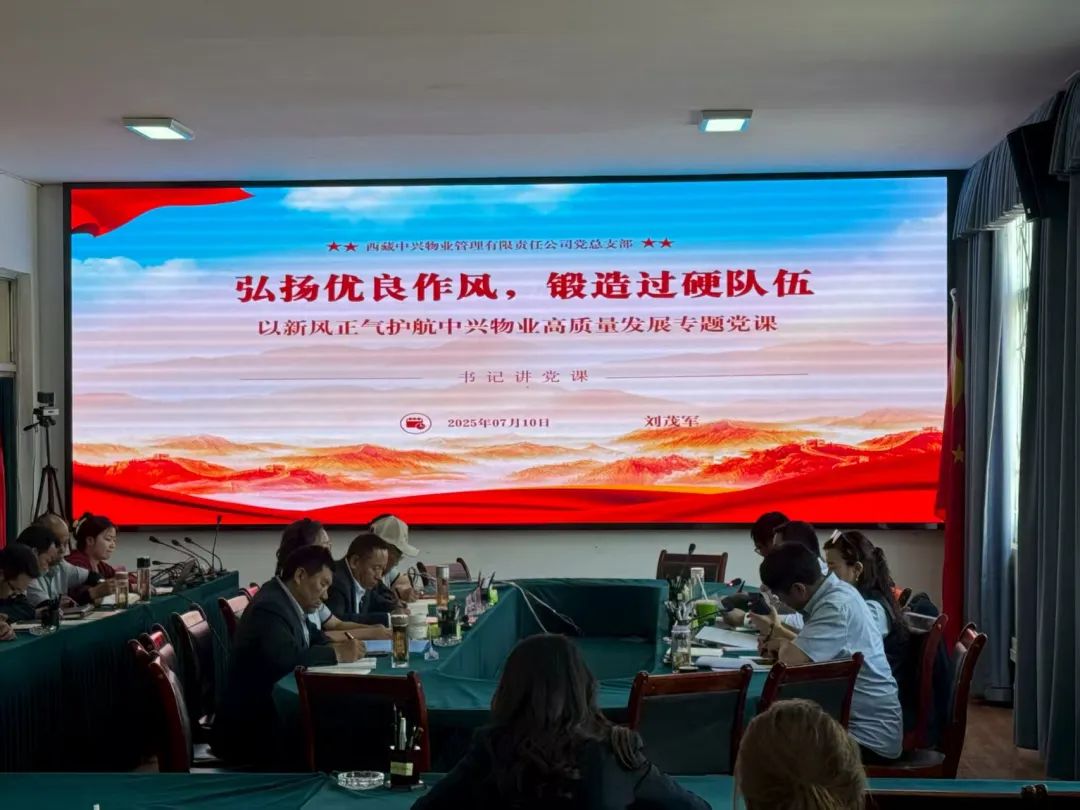 ???????????????????????????????????????????????????????????????????????????在中國(guó)共產(chǎn)黨成立104周年之際,為扎實(shí)開(kāi)展深入貫徹中央八項(xiàng)規(guī)定精神學(xué)習(xí)教育走深走實(shí),將全面從嚴(yán)治黨要求貫穿至西藏中興物業(yè)管理有限責(zé)任公司工作的全過(guò)程、各環(huán)節(jié)。7月10日,物業(yè)公司黨總支書(shū)記劉茂軍同志以《弘揚(yáng)優(yōu)良作風(fēng),鍛造過(guò)硬隊(duì)伍——以新風(fēng)正氣護(hù)航中興物業(yè)高質(zhì)量發(fā)展》為題,為物業(yè)公司全體干部職工上了一堂內(nèi)容豐富、思想深刻的專(zhuān)題黨課。