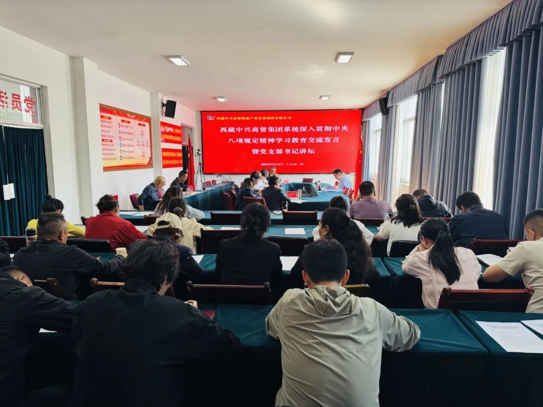 ???????????????????????????????????????????????????????????????????????????為了深入貫徹落實習(xí)近平關(guān)于黨的作風(fēng)建設(shè)重要論述,進一步統(tǒng)一思想、凝聚共識,推動集團作風(fēng)建設(shè)持續(xù)走深走實。7月18日上午,西藏中興商貿(mào)物流產(chǎn)業(yè)發(fā)展集團有限公司在集團二樓會議室組織開展集團系統(tǒng)深入貫徹中央八項規(guī)定精神學(xué)習(xí)教育交流研討暨黨支部書記講壇,由集團黨委專職副書記索朗次仁同志主持并作點評講話,集團各級黨組織書記、各二級公司黨建工作部負責人、集團本部一、二支部全體黨員參加活動。