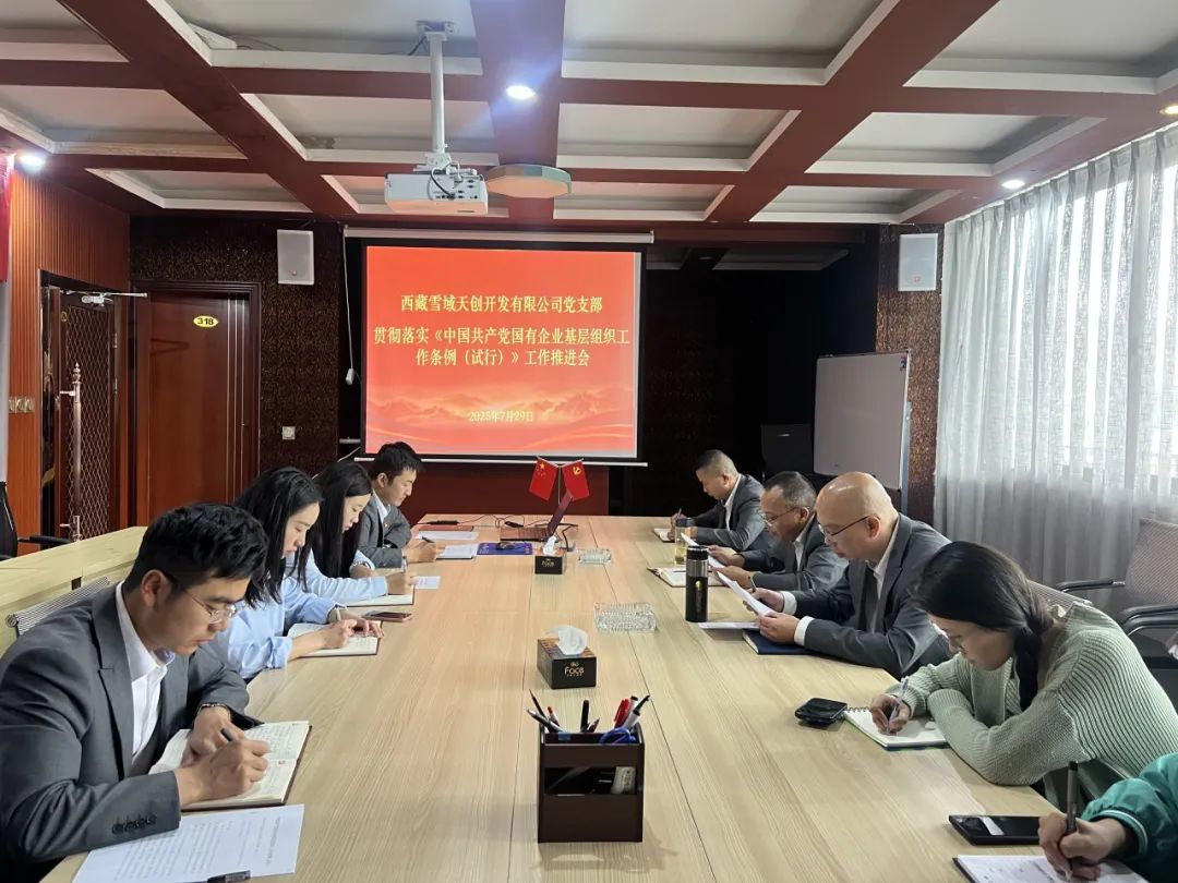 ???????????????????????????????????????????????????????????????????????????為貫徹落實(shí)全國(guó)、全區(qū)組織部長(zhǎng)會(huì)議精神,根據(jù)上級(jí)黨委下發(fā)《關(guān)于開展〈中國(guó)共產(chǎn)黨國(guó)有企業(yè)基層組織工作條例(試行)〉貫徹落實(shí)情況評(píng)估的工作方案》通知要求,雪域天創(chuàng)公司黨支部于2025年7月29日組織全體干部職工召開貫徹落實(shí)《中國(guó)共產(chǎn)黨國(guó)有企業(yè)基層組織工作條例(試行)》工作推進(jìn)會(huì)。