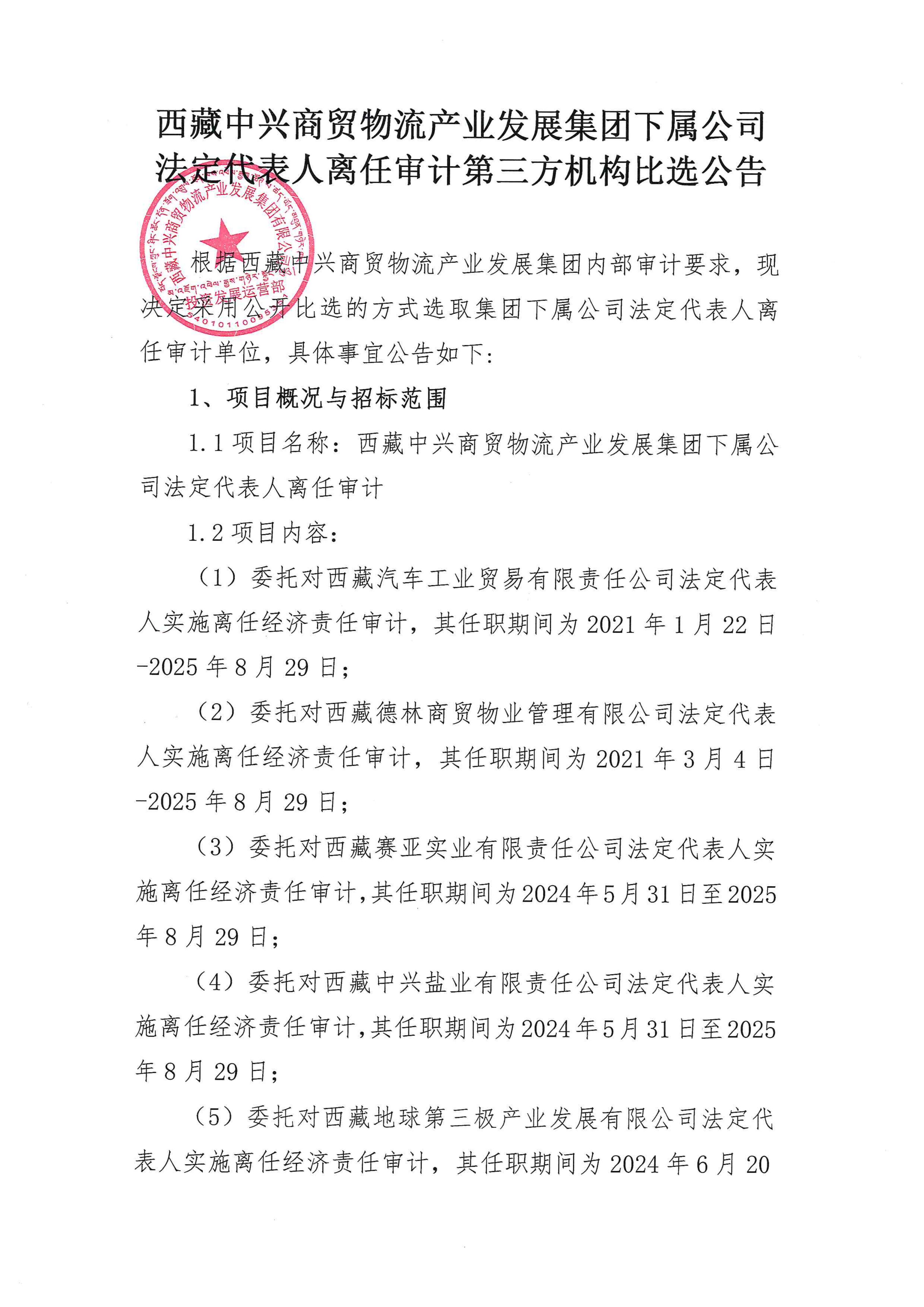 西藏中興商貿(mào)物流產(chǎn)業(yè)發(fā)展集團下屬公司法定代表人離任審計第三方機構(gòu)比選公告